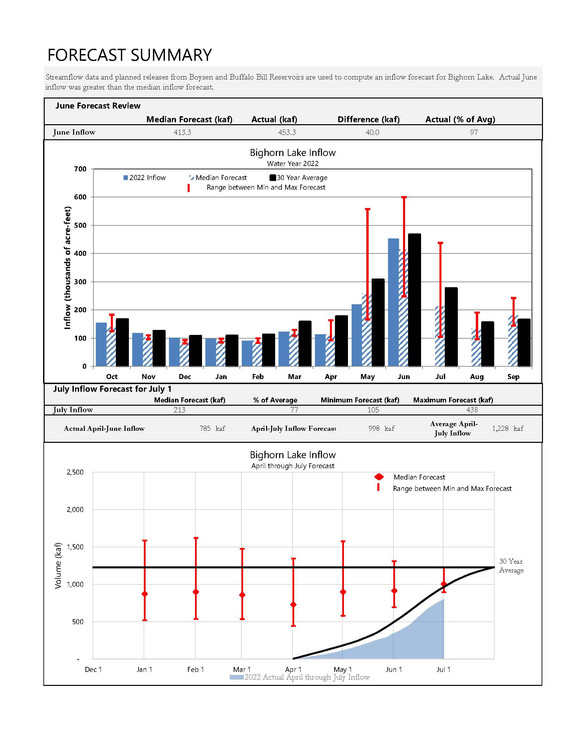 July is off to dry start with abnormally dry conditions persisting in the basin, causing inflows to decrease below average. As a response, Bighorn River releases decreased to 4,500cfs on July 7th, and are currently projected to keep decreasing by 250cfs each day, until river flows reach 2,600cfs on Monday. Flows are expected to remain around 2,600cfs through the month of July based on climate outlook forecasts that are showing above average temperatures and below, or near average precipitation. The good news is that all water is currently being released through the turbines of Yellowtail dam equating to cool, clear, well oxygenated water. Bighorn guides and anglers are reporting excellent fishing conditions and healthy trout, as they anxiously await the arrival of PMD's and Yellow Sallies.